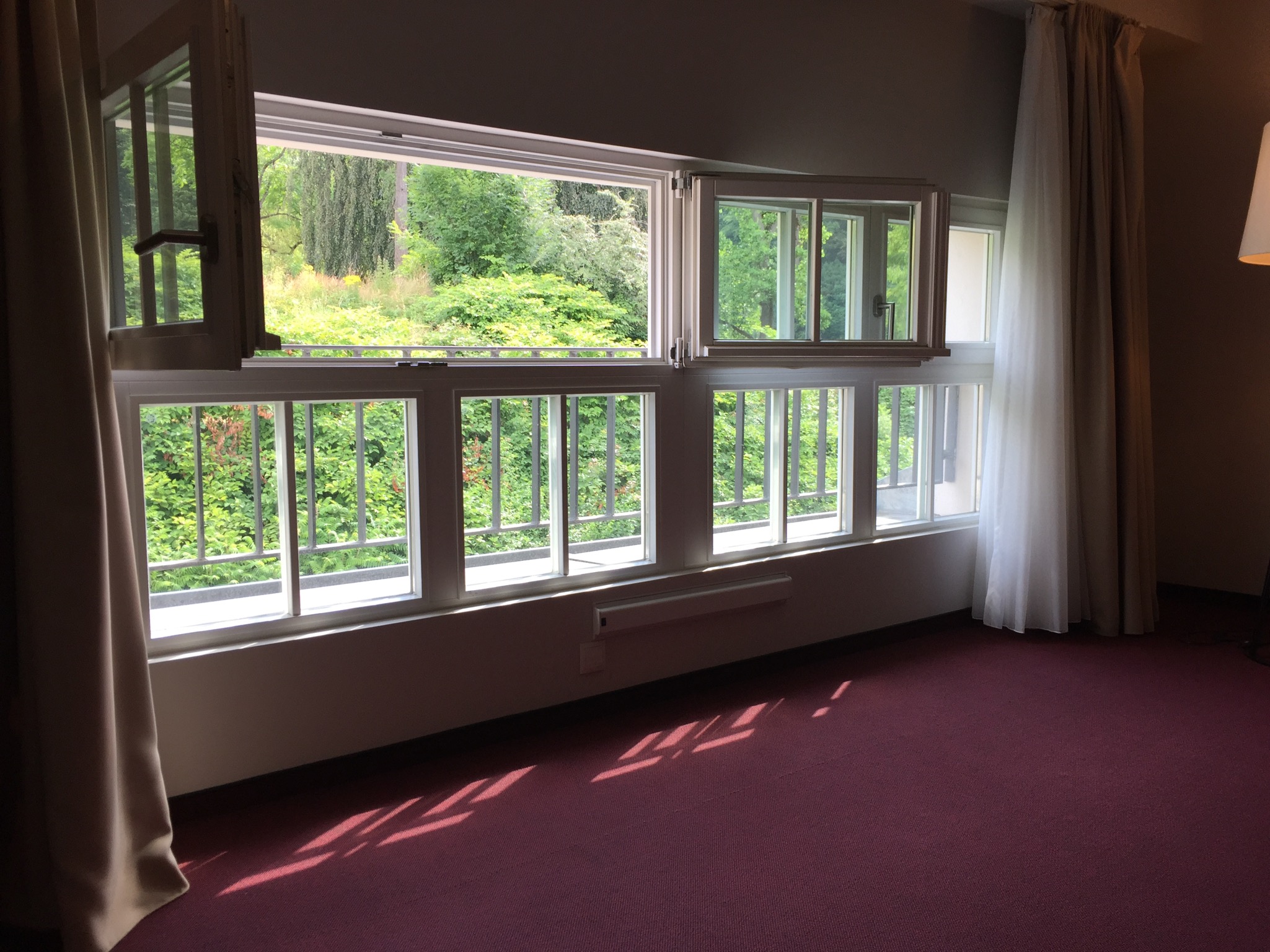 窓は崖に面しているので、窓を開けていても人目が気にならず、緑が多くてゆっくりした気分で過ごせます。