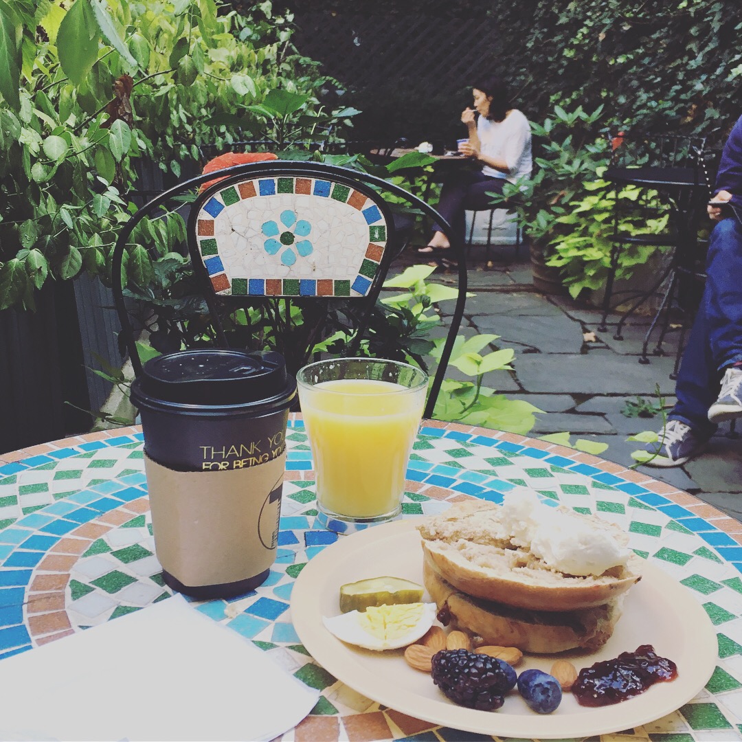 このホテルの良いところは、無料の朝食の種類が充実していて、しかも中庭で食べられるとこと。天気が良いと素敵な朝食タイムになります。